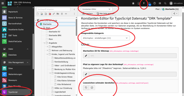 - Nach dem Speichern sollten Sie unbedingt mit dem Blitz (oben rechts) den Seiteninhalts-/Frontend-Cache leeren.